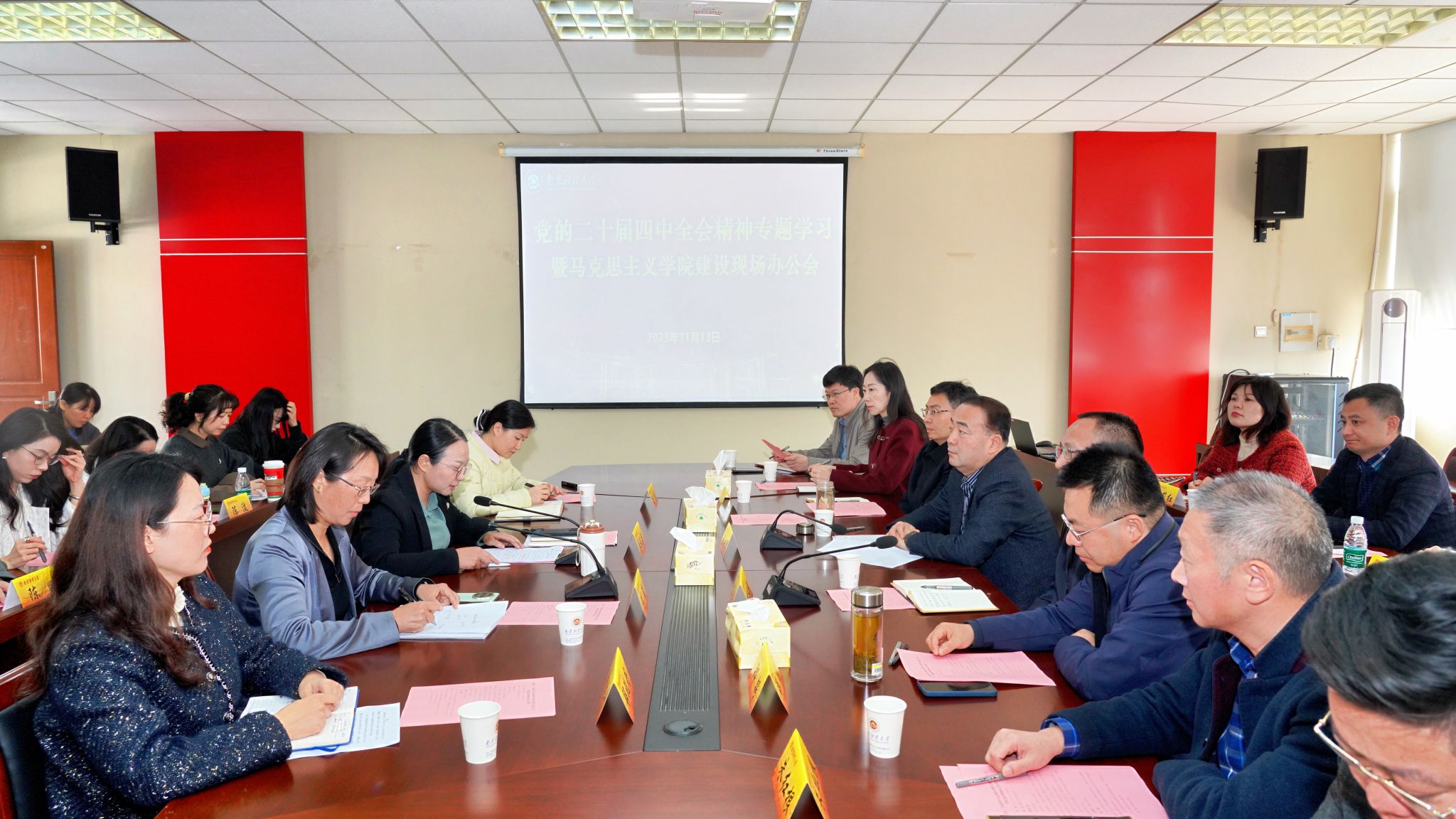 11月13日上午,校长程永波在仙林校区德正楼508会议室主持党的二十届四中全会精神专题学习暨DG真人