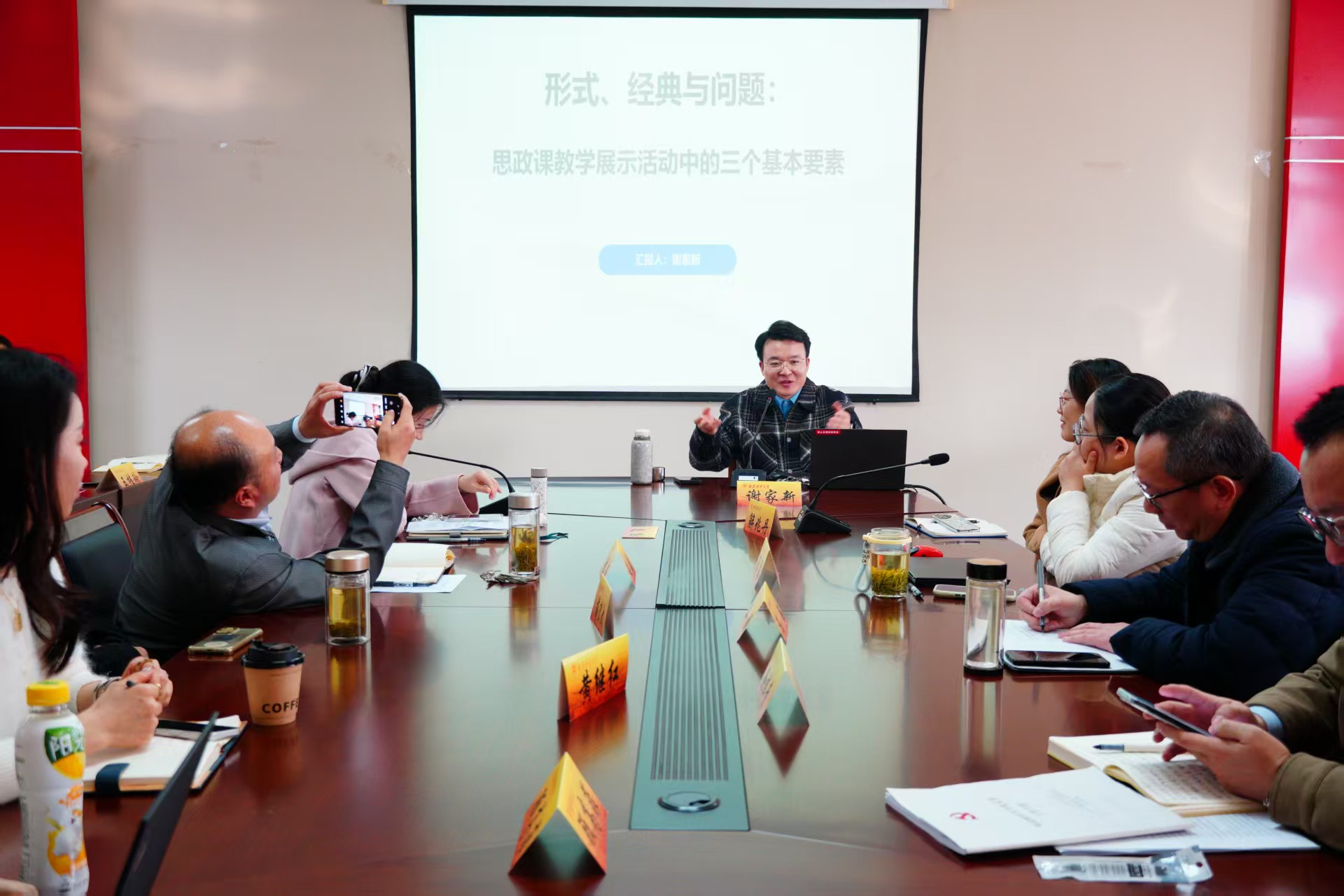 举办“名师名课示范观摩”活动。谢家新老师就题为《形式、经典与问题:思政课教学展示活动中的三个基本要素》进行示范课程,并向各位老师分享教师教学比赛的心得体会。