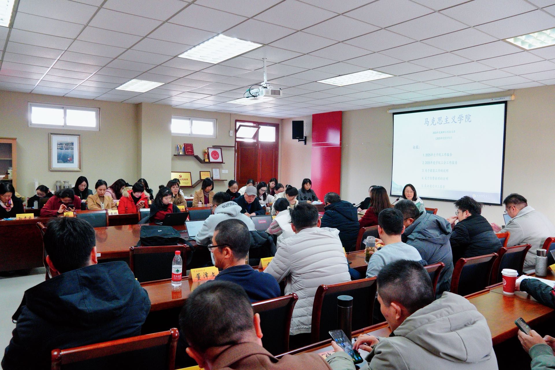 在德正楼508会议室召开全体教职工大会。会议由DG真人
