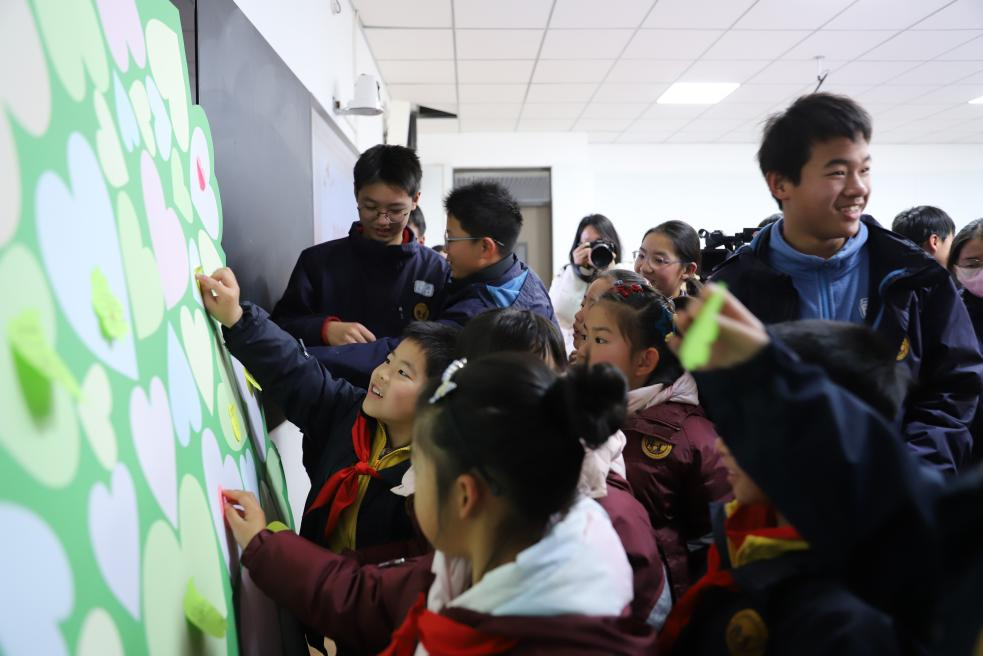 本次活动还设置了集体创作环节。大中小学生们在便笺上写下自己的人生理想并粘贴在展板上。一张张卡片汇聚成集体愿景,生动诠释了思政教育内化于心、外化于行的育人成效。