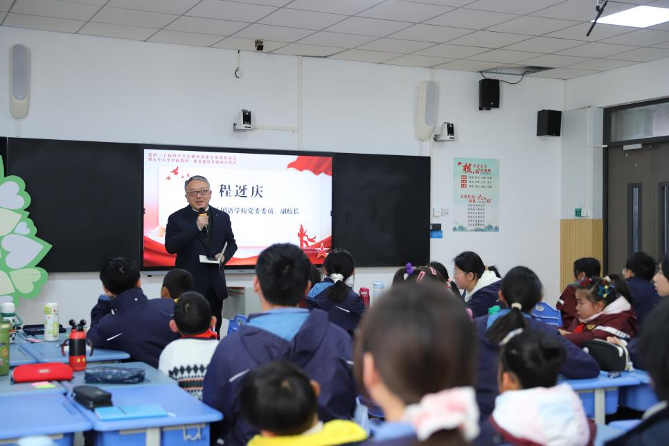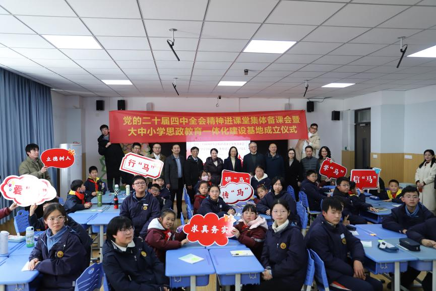 于1月9日在南京仙林外国语学校华侨城中学与中共南京市栖霞区委宣传部、仙外华侨城中学、仙外华侨城小学共同举办党的二十届四中全会精神进课堂集体备课会暨大中小学思政教育一体化建设基地成立仪式。栖霞区委宣传部副部长兼文明办主任罗红玲、南京仙林外国语学校党委委员程迓庆副校长、DG真人视讯试玩平台