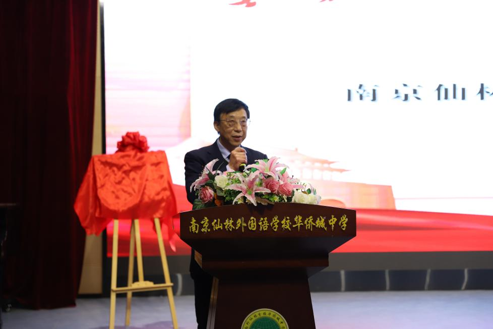 党委书记李骏宣布基地正式成立,南京财经大学党委宣传部副部长秦韶华、仙外华侨城中学校长苏晓辉、仙外华侨城小学校长李晓勇共同揭牌。