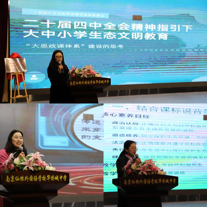 副教授王萌、华侨城中学老师、贾赛男仙外华侨城小学老师张华娟围绕“落实党的二十届四中全会精神、推进‘生态文明建设’”教育教学主题,展开集体备课会议,针对大中小学思政课讲授方法研讨和教学理念进行交流学习。