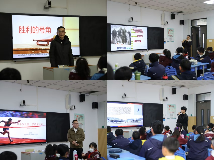 基于大中小思政课一体化建设“启蒙性学习-体验性学习-常识性学习-理论性学习”的演进逻辑,备课会结束后,小学生、中学生、研究生共聚一堂、集体学习,仙外华侨城小学老师蔡诚开、仙外华侨城中学老师陶倩、南财马院老师徐梓彦,循序渐进地开展了以“斗争”为主线、从抗战英雄小故事到近代民族屈辱和抗争历史最后到斗争精神的主题授课;南财马院退伍研究生邵帅作了《我的军旅生活》的主题分享。大中小同学们积极互动、踊跃发言、成效显著。