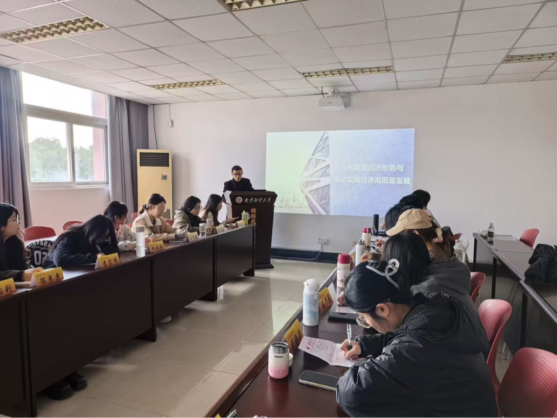 分党校系列培训第六讲在校网络思政工作中心举行,特邀我校“五老”讲师团成员于海量教授为2025级入党积极分子、全体党员讲授题为“当前我国经济形势与推动实现经济高质量发展”的主题党课。