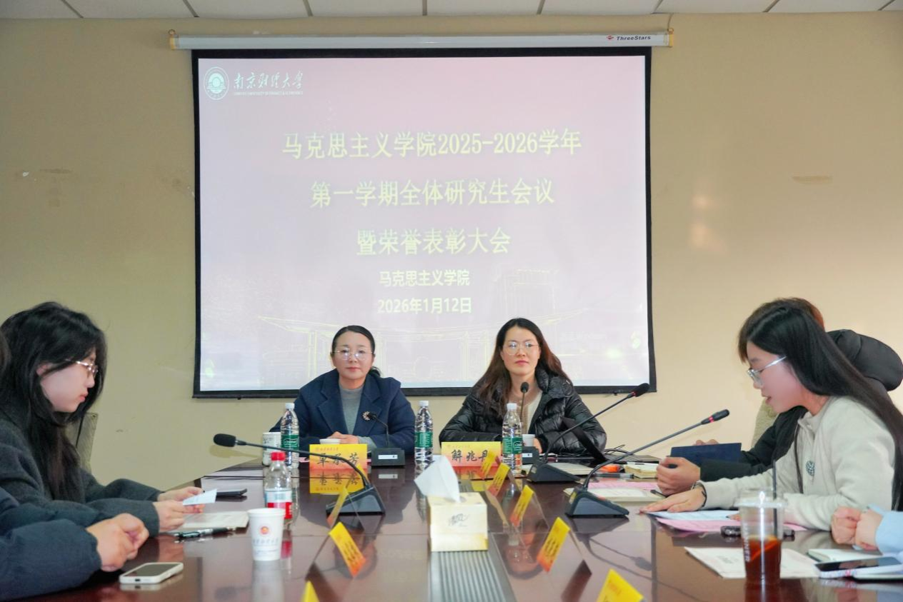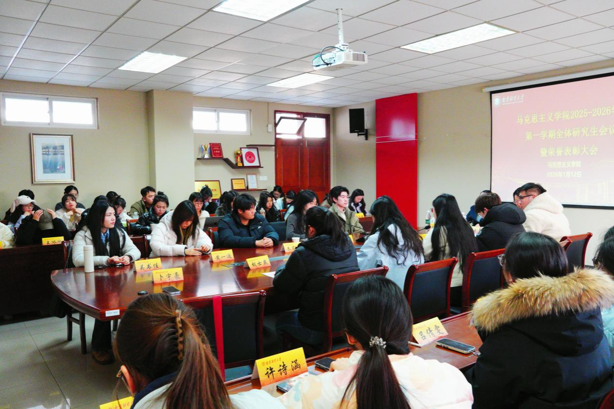 在德正楼508会议室召开2025-2026学年第一学期全体研究生会议暨荣誉表彰大会。院长卓承芳教授,副院长(挂)解兆丹老师,以及全体研究生参加此次会议,会议由研究生会主席方蒙主持。